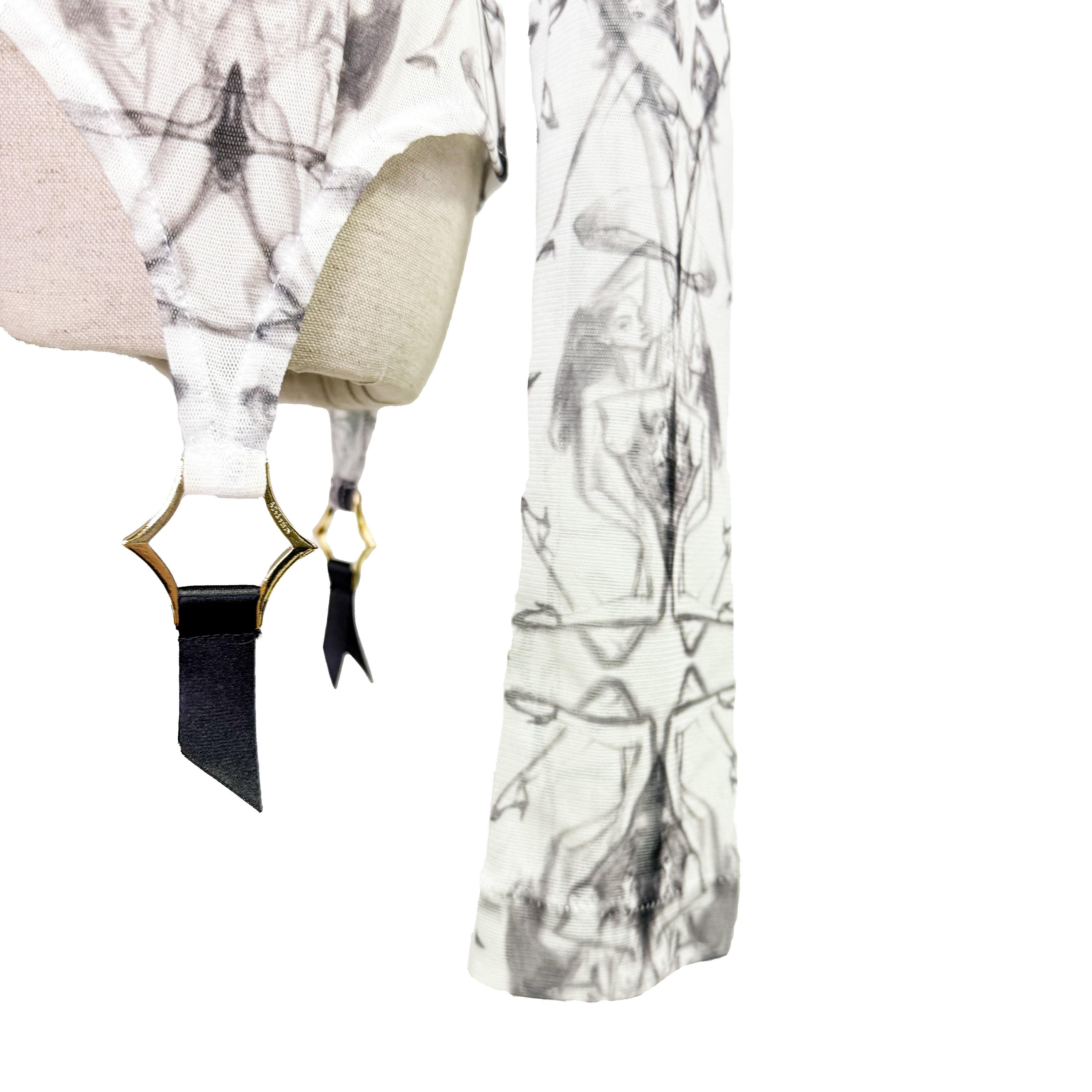 ガーター風デザインで、オリジナルのメタルパーツをあしらいました。(靴下留めの機能はございません)