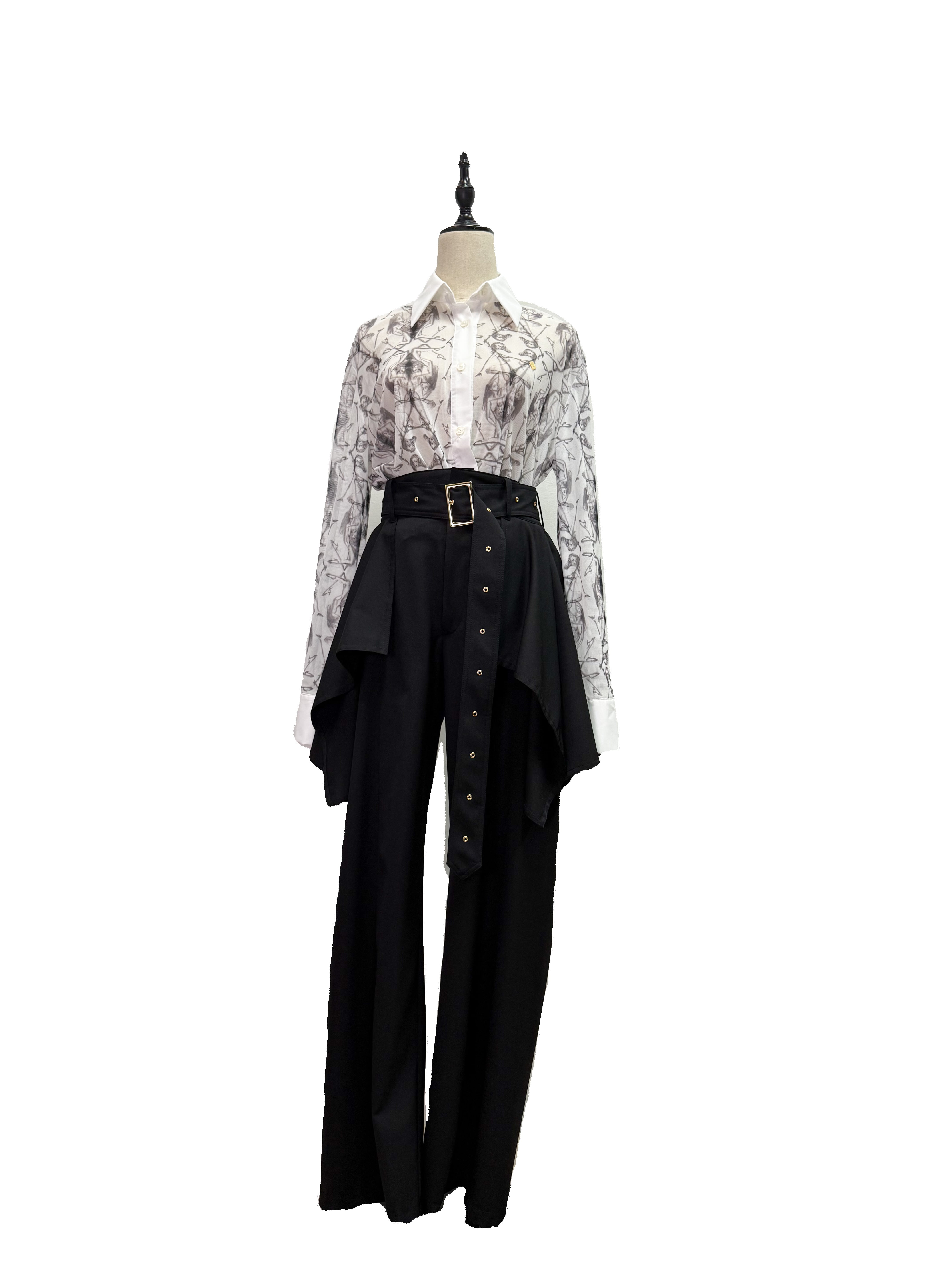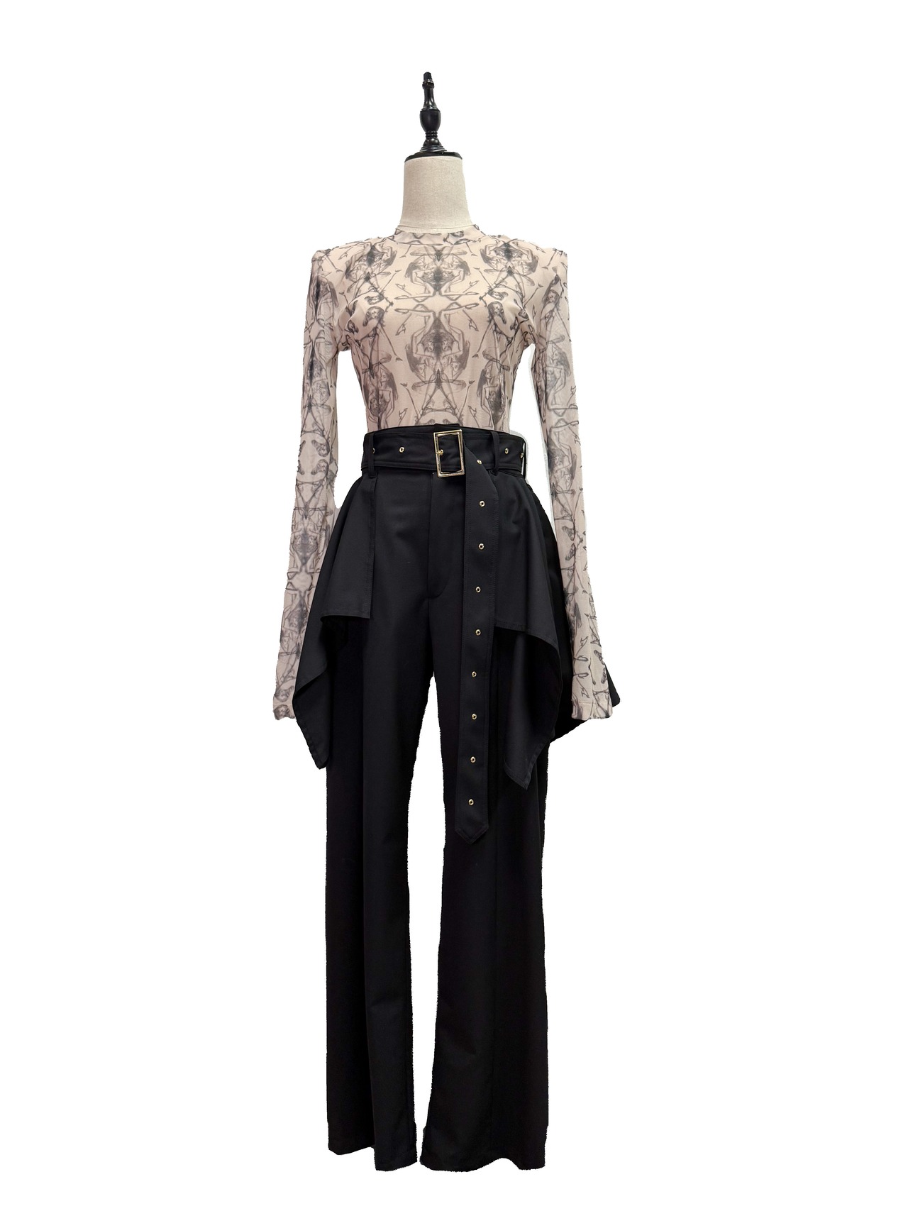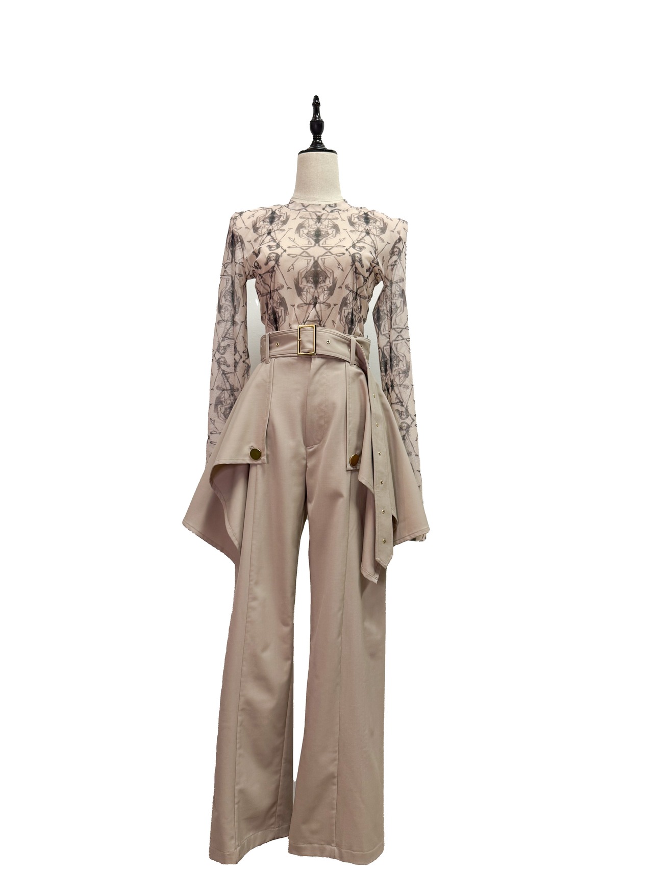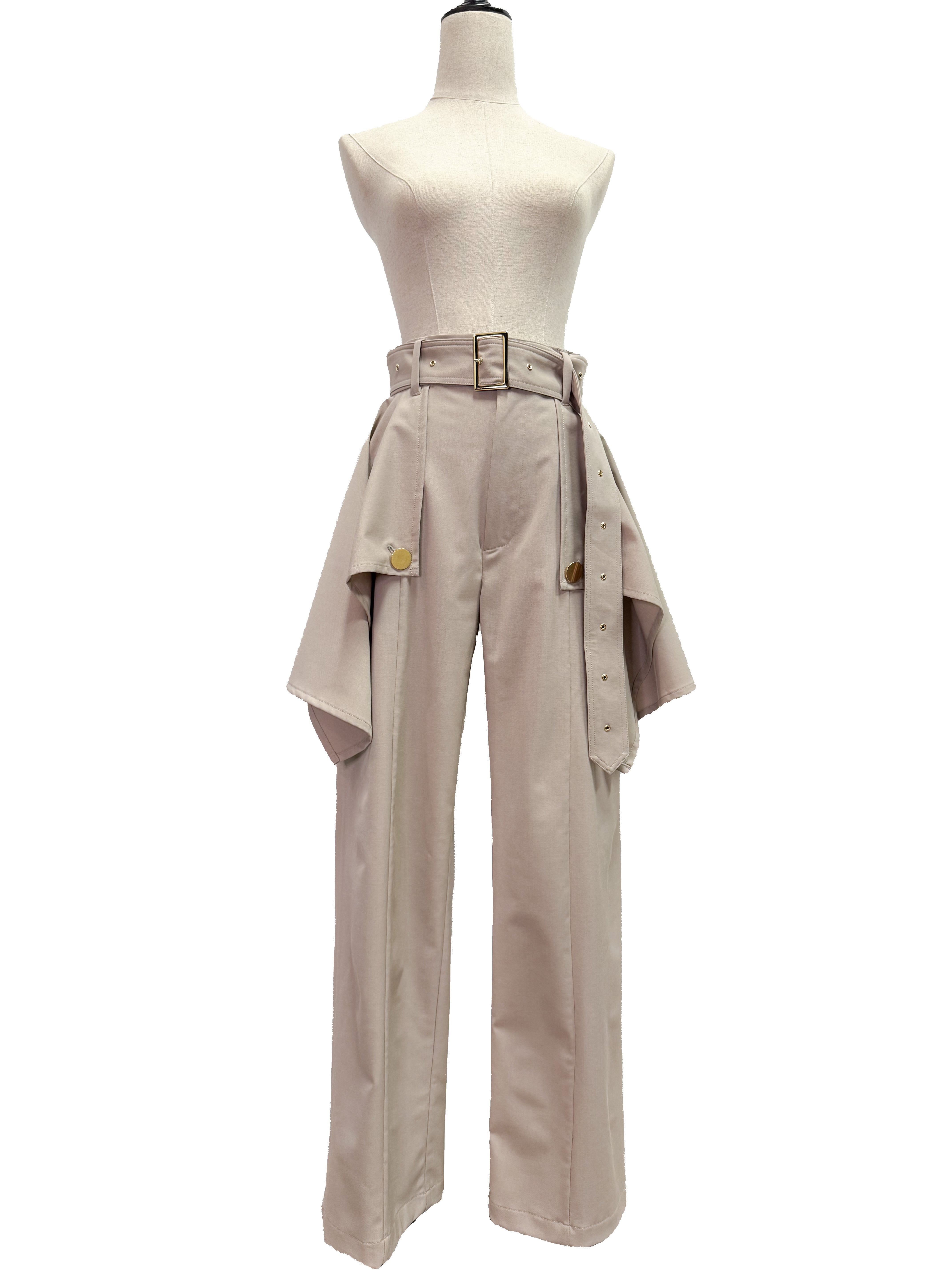 両サイドにトレンチコートのような覆い布がデザインされています。
