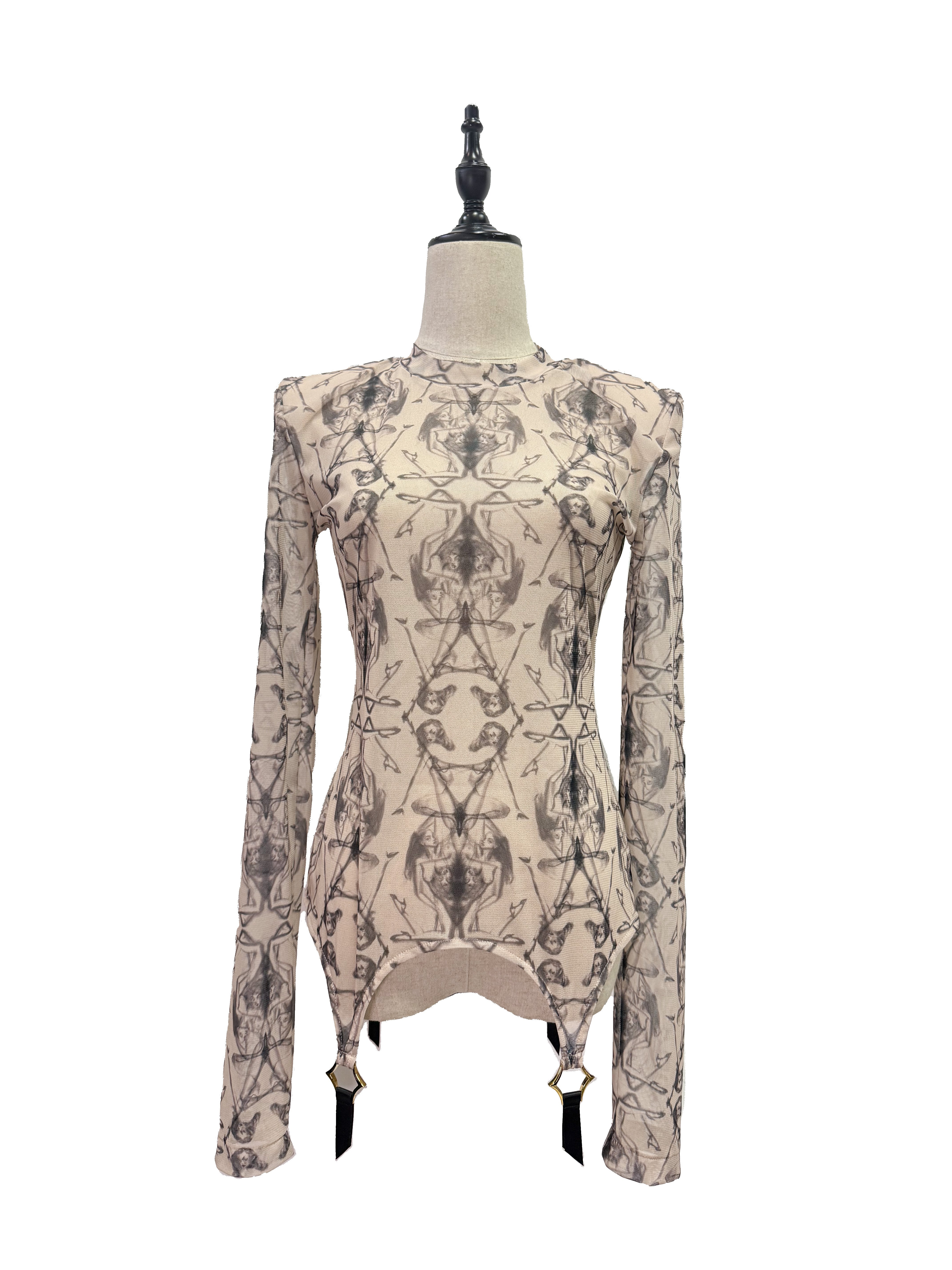 ガーター風デザインで、オリジナルのメタルパーツをあしらいました。(靴下留めの機能はございません)