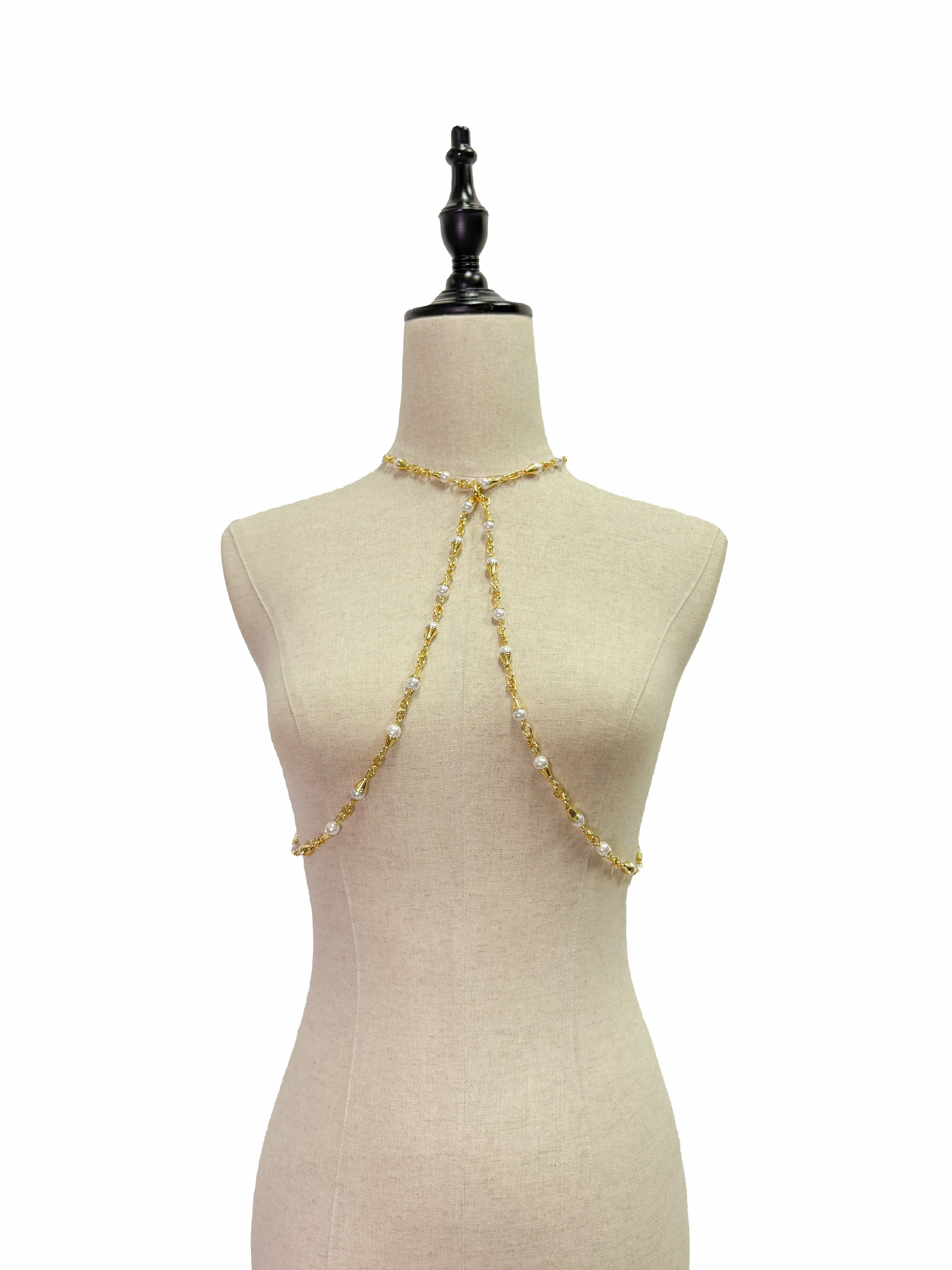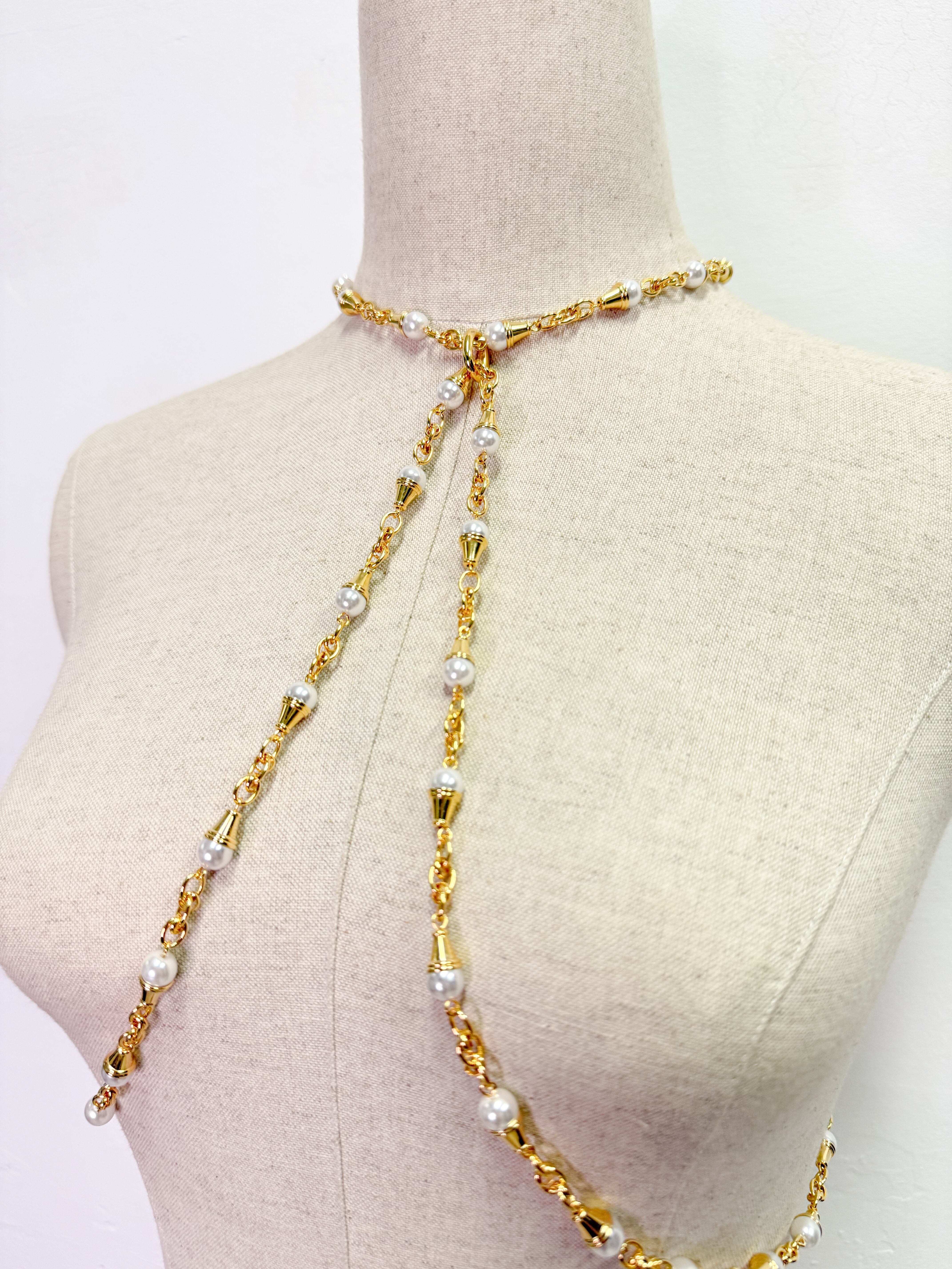 パールが間に入った珍しい形のデットストックチェーンを全体に使用したボディチェーン。