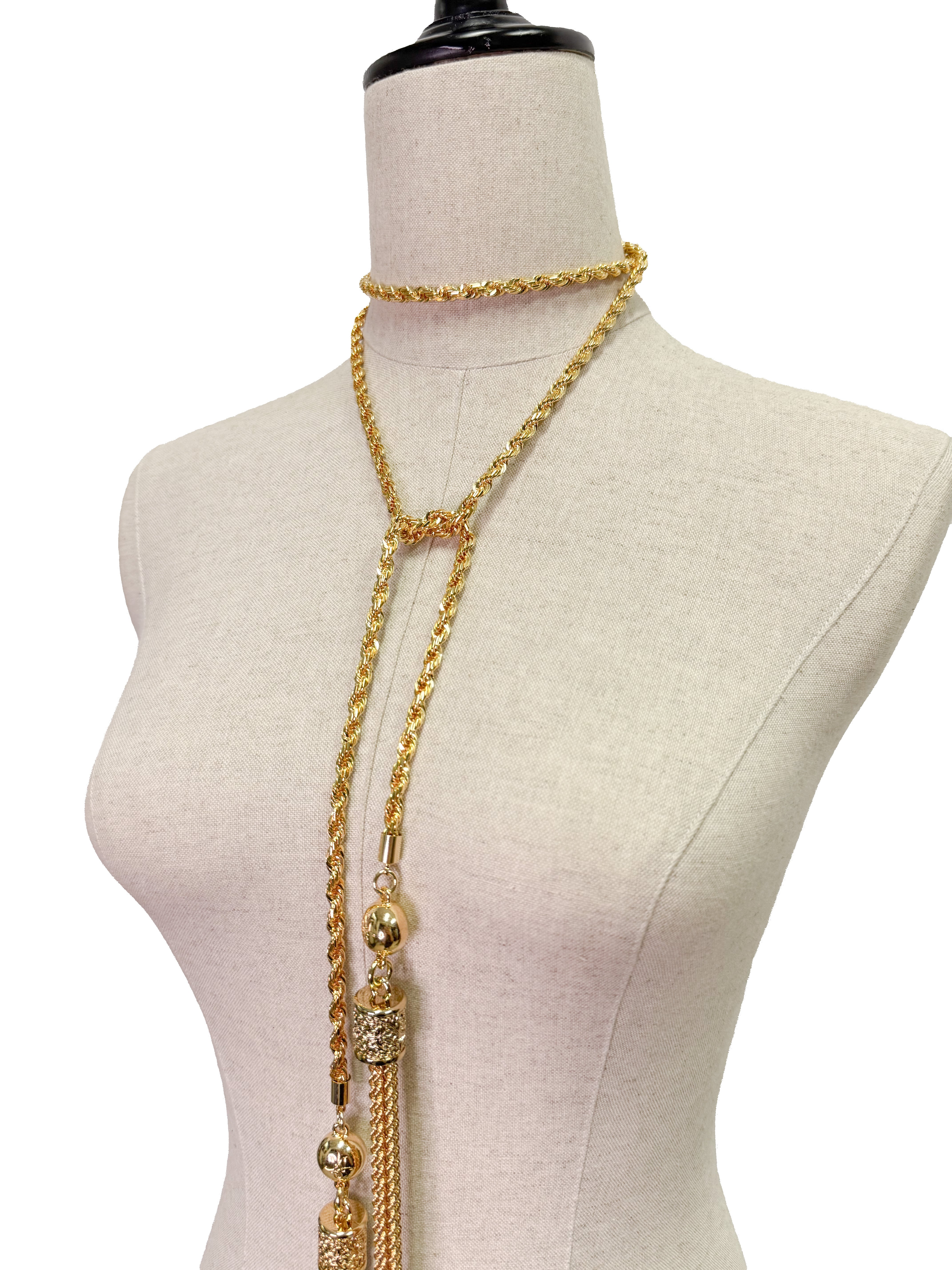一本の紐状になっているので、首に垂らしたり、巻いたり、ウエストに巻いたり、お好きな使い方が可能です。