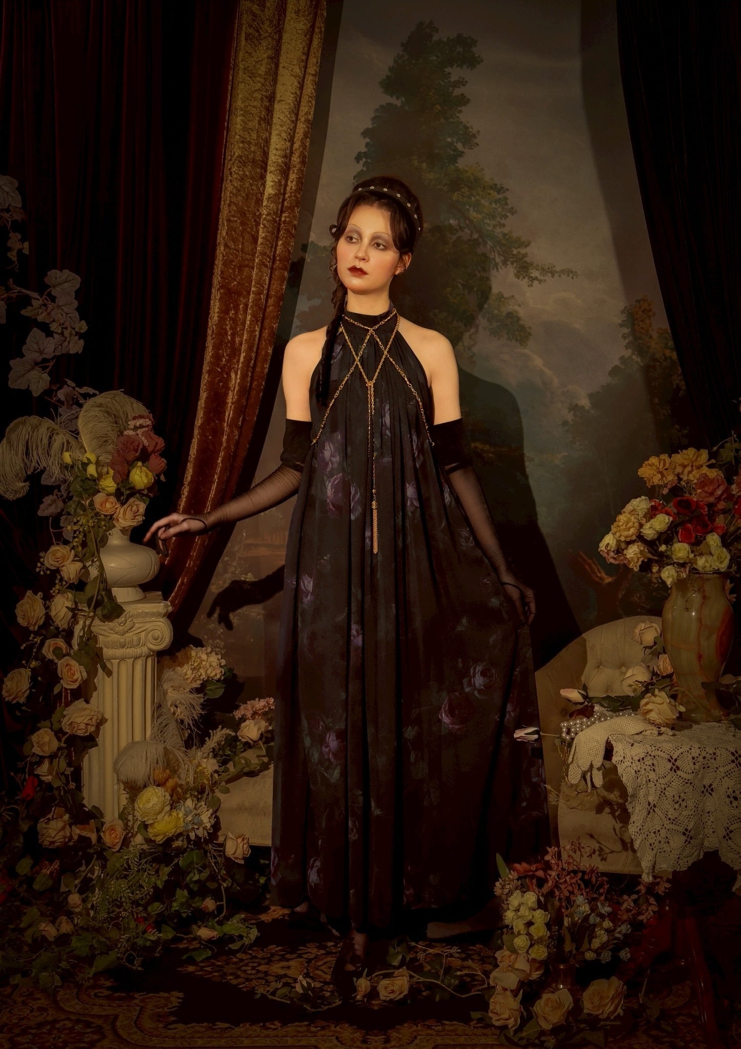 ロープのようなチェーンで作られたメタルのタッセルが垂れて揺れ動くデザインです。