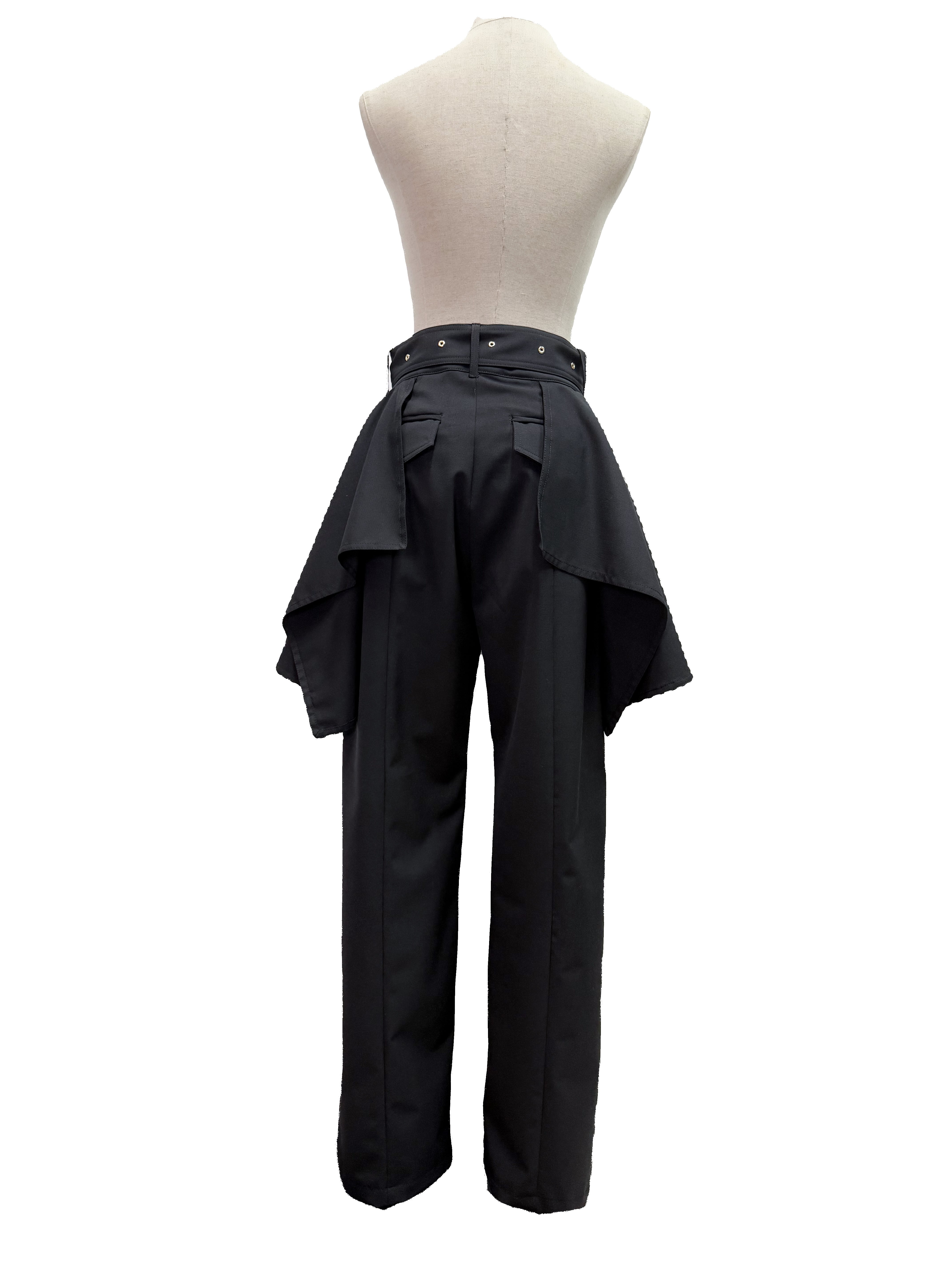 両サイドにトレンチコートのような覆い布がデザインされています。