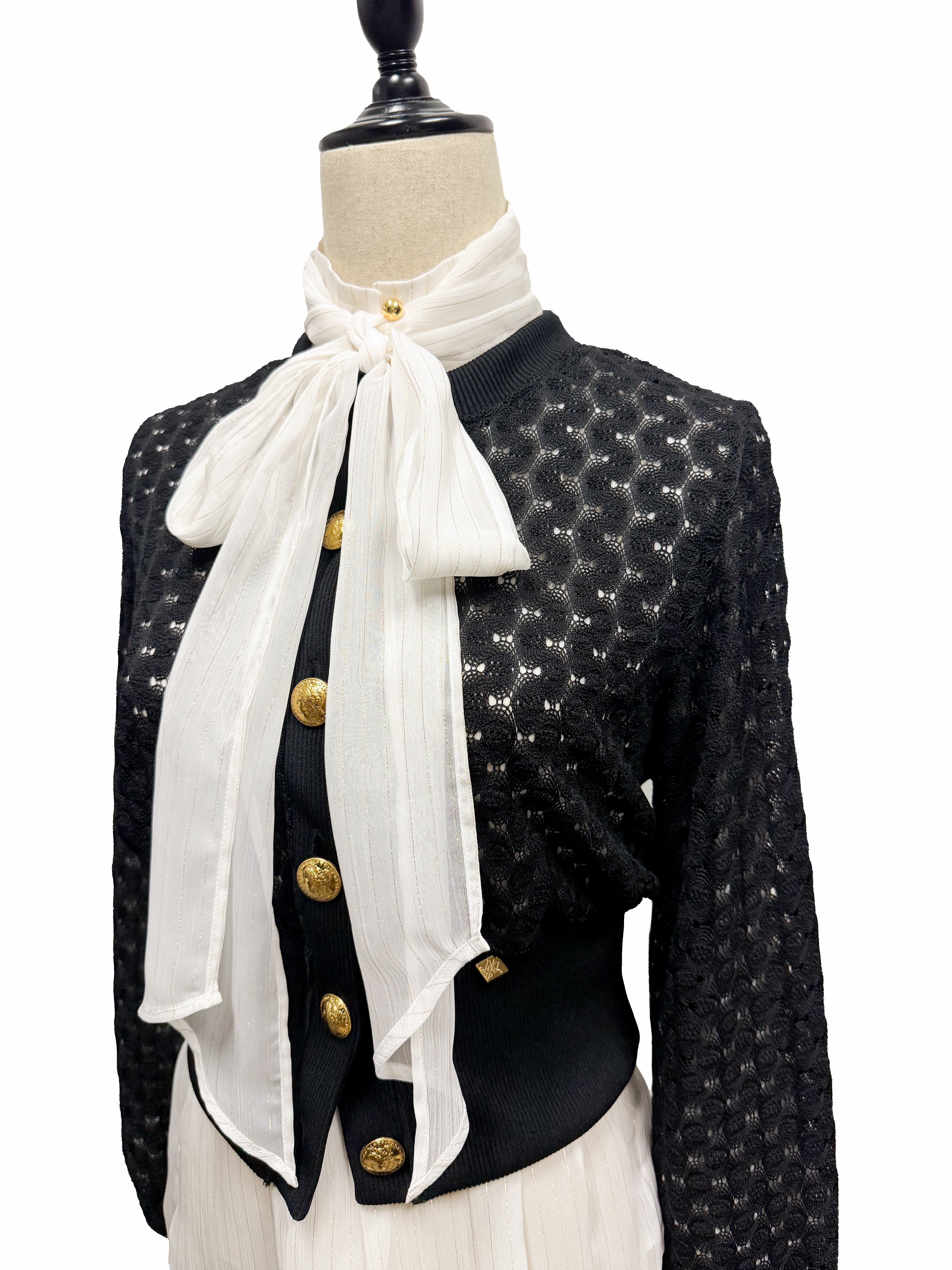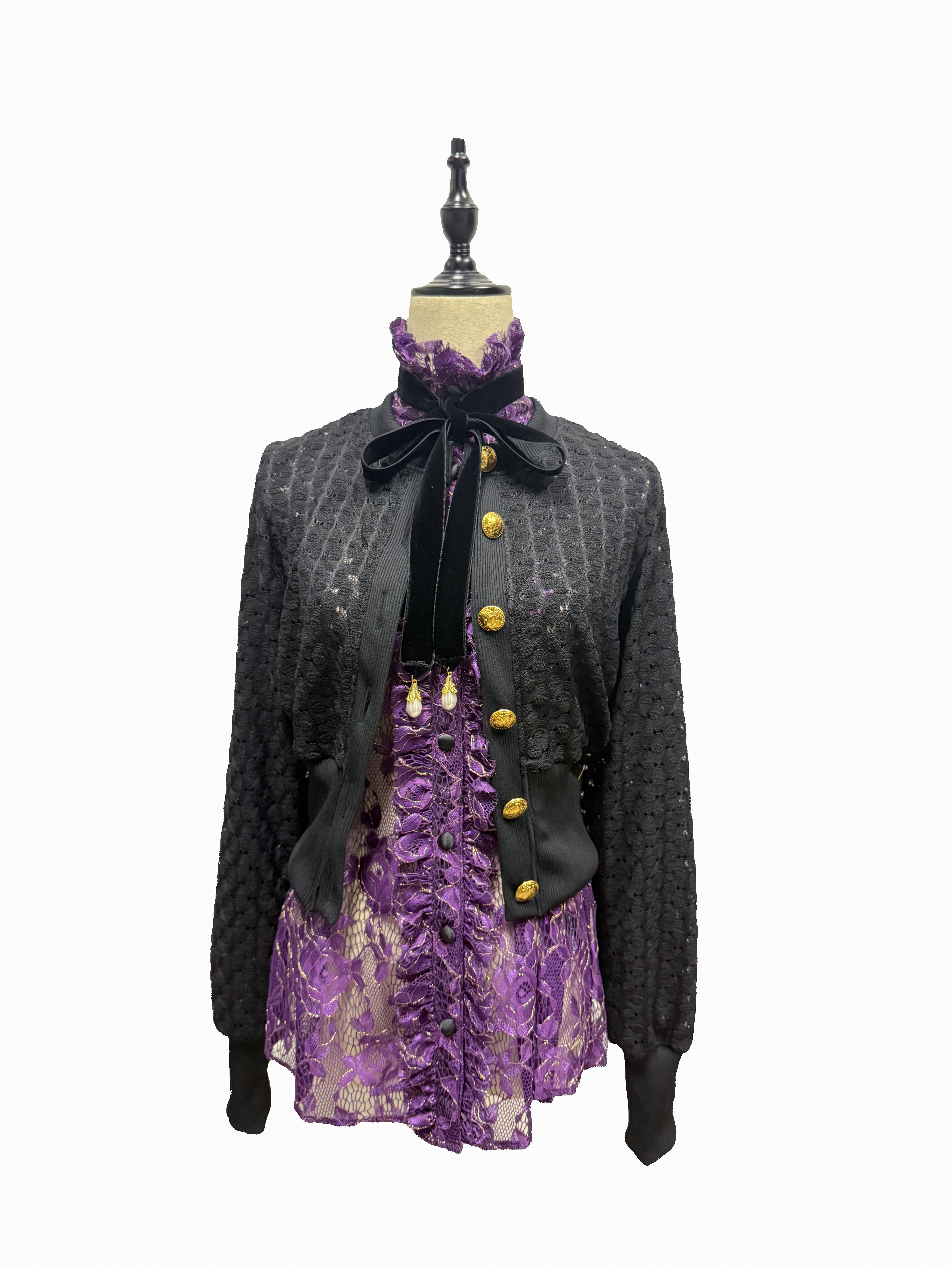 ブラウスと一緒に着て、衿やリボンを出してもぴったりです。