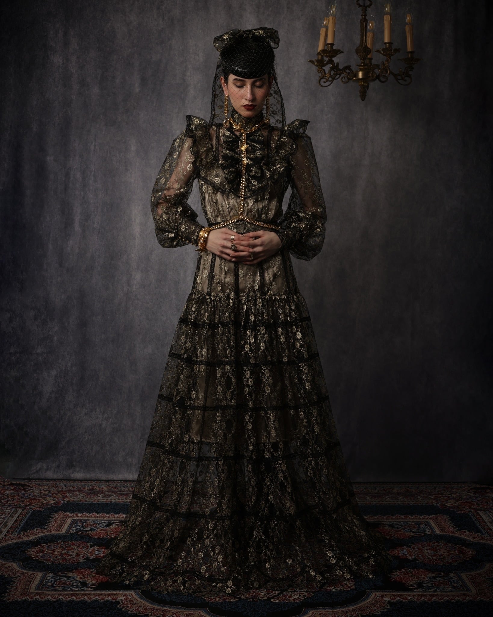 ゴールドのチュールにゴールドのリボンが付きます。