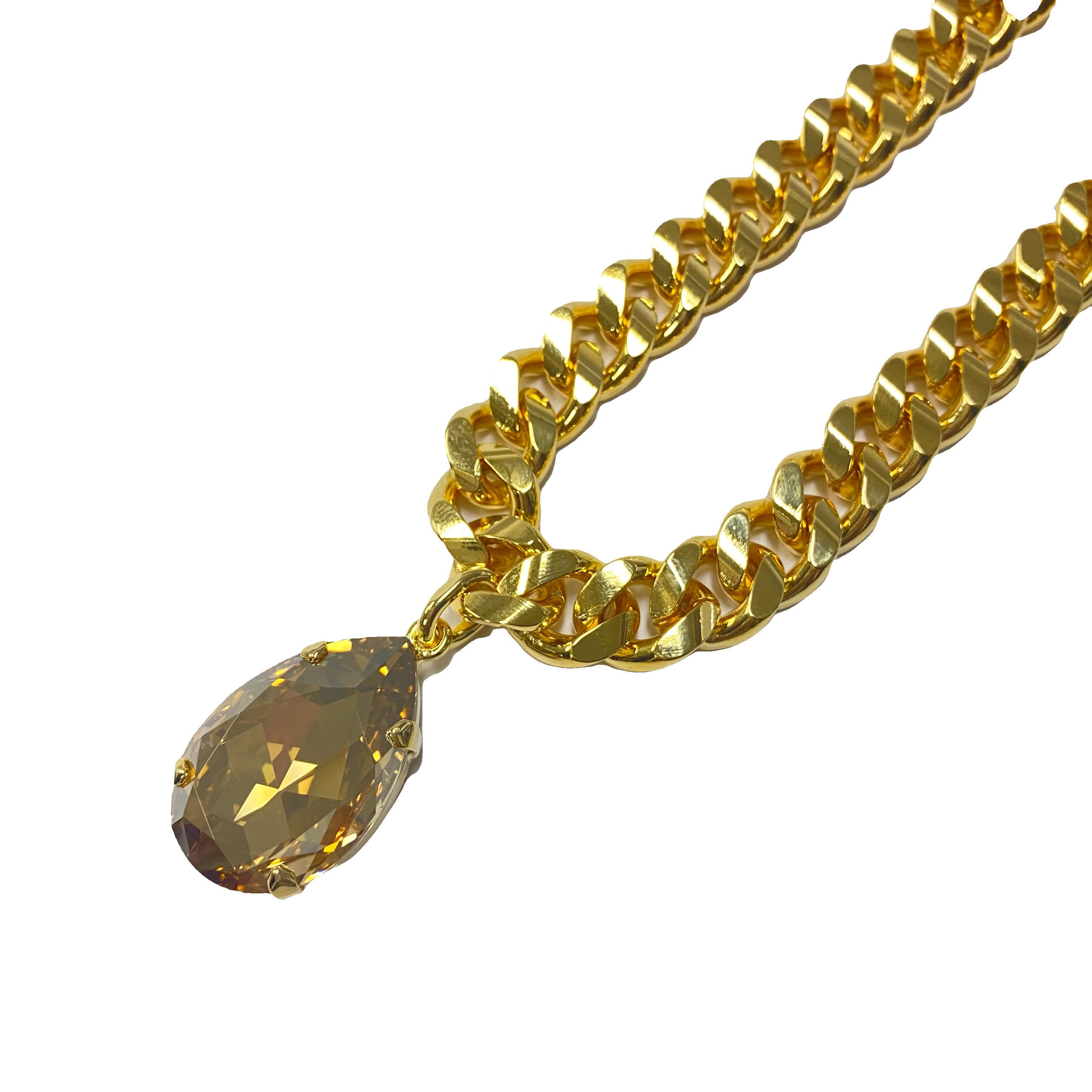 大ぶりのチェーンにドロップ型のクリスタルが下がっているデザイン。