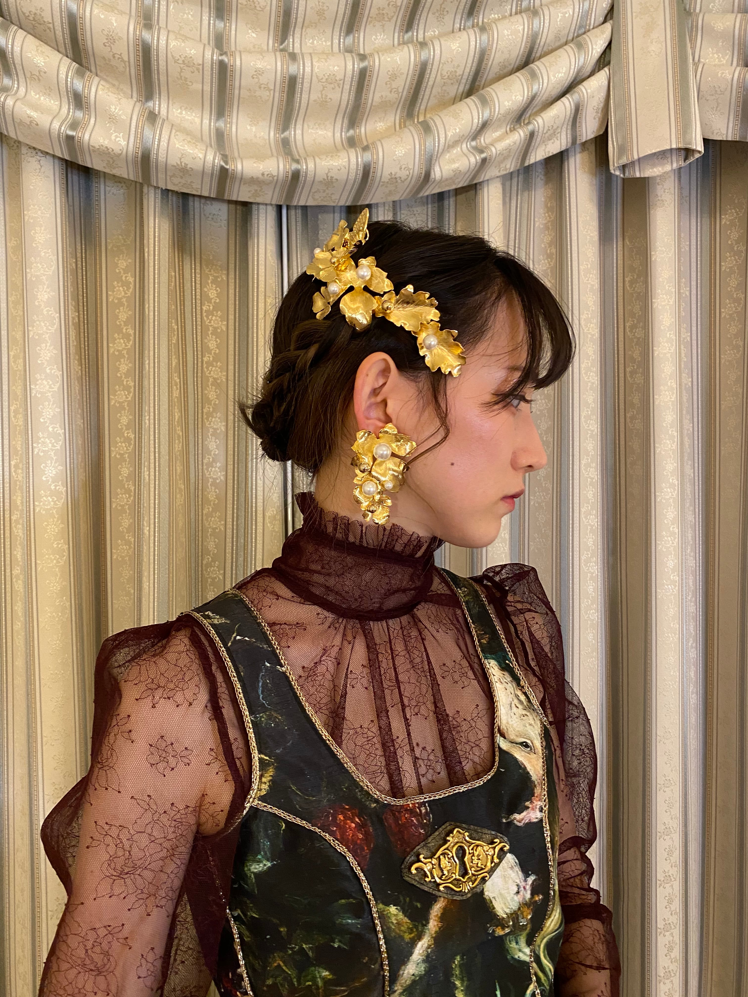 カチューシャのようにリーフモチーフを後ろに向かっておつけいただくことも可能です。
