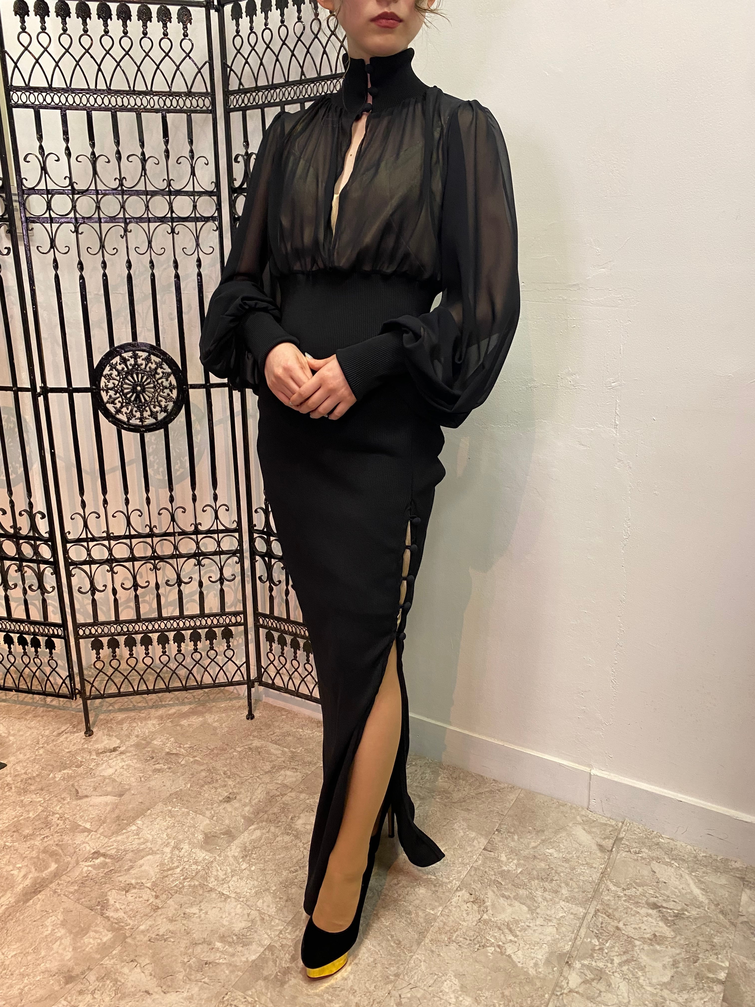 シースルー部分はシフォン生地と、レース生地がございます(画像の4、5枚目参考)