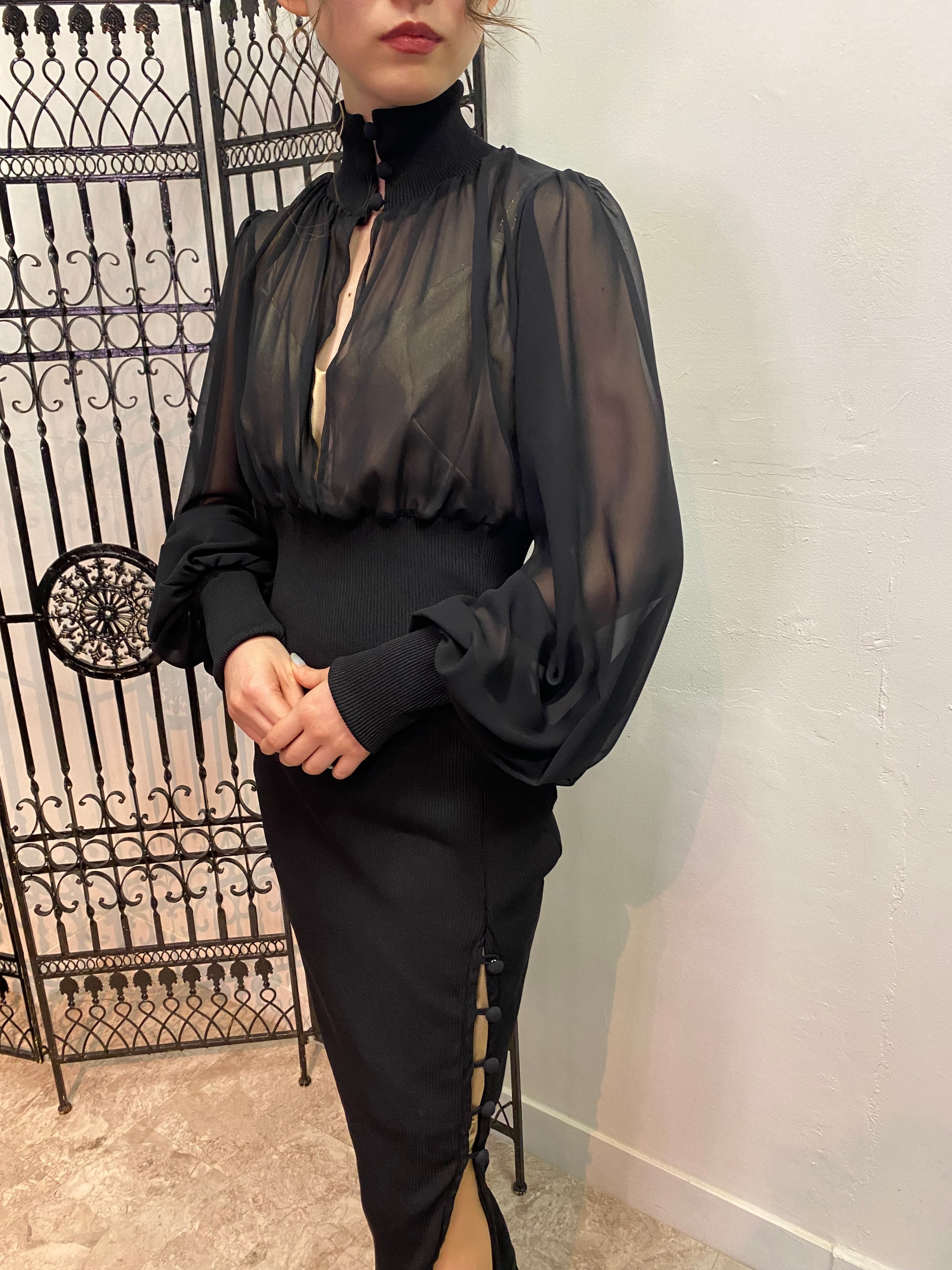たっぷりとしたパフスリーブと身頃もギャザーのよったデザインです。