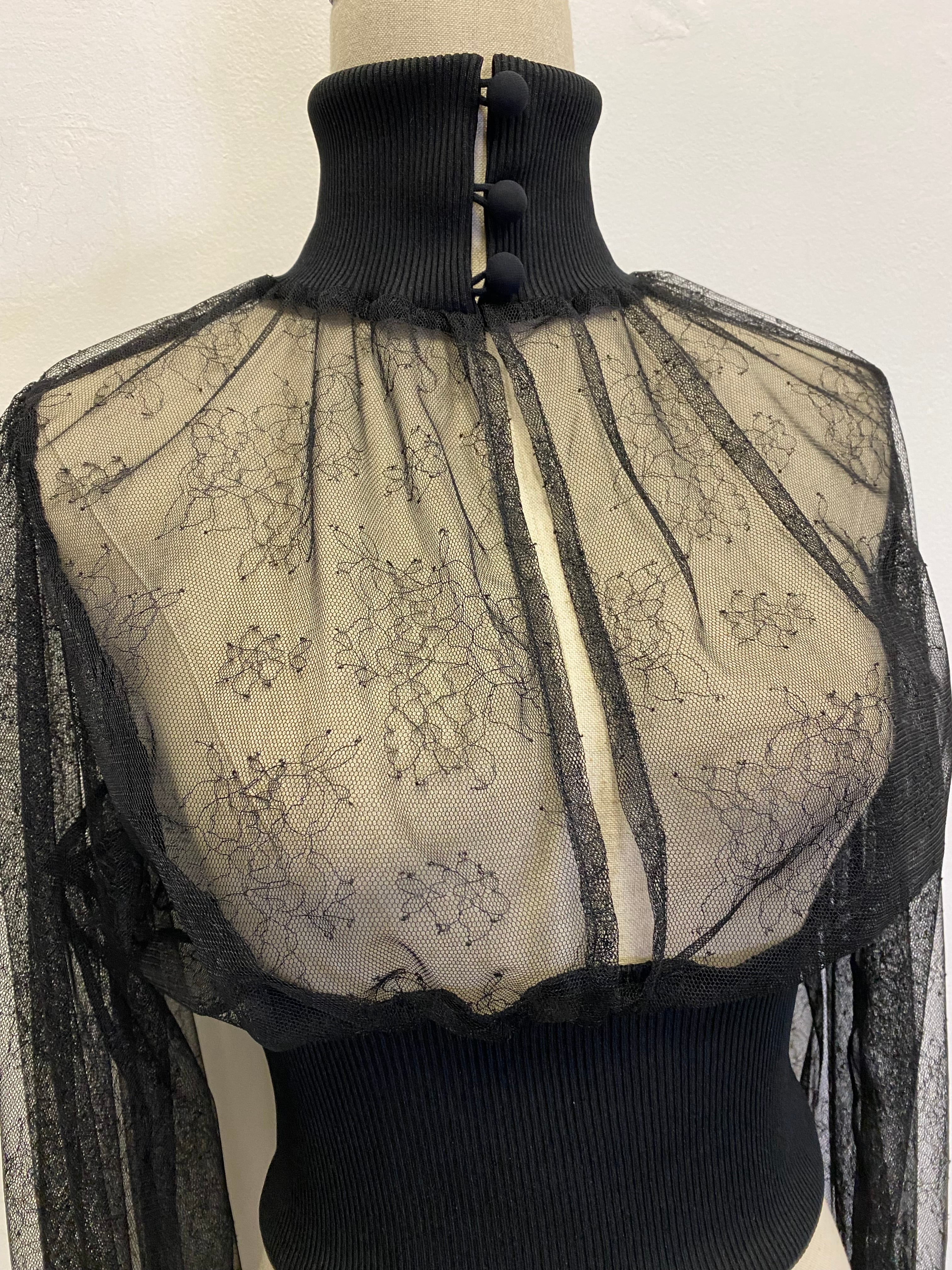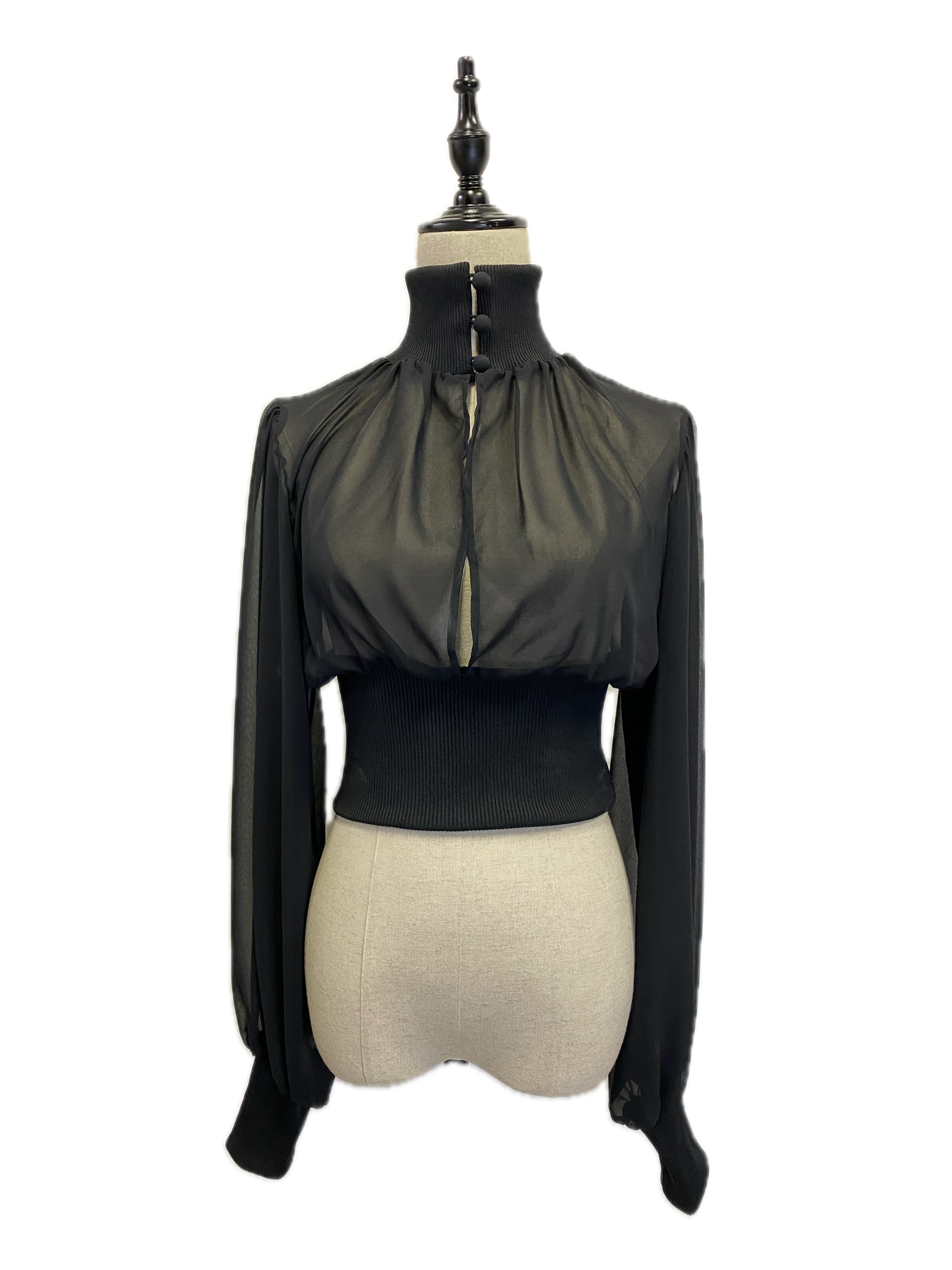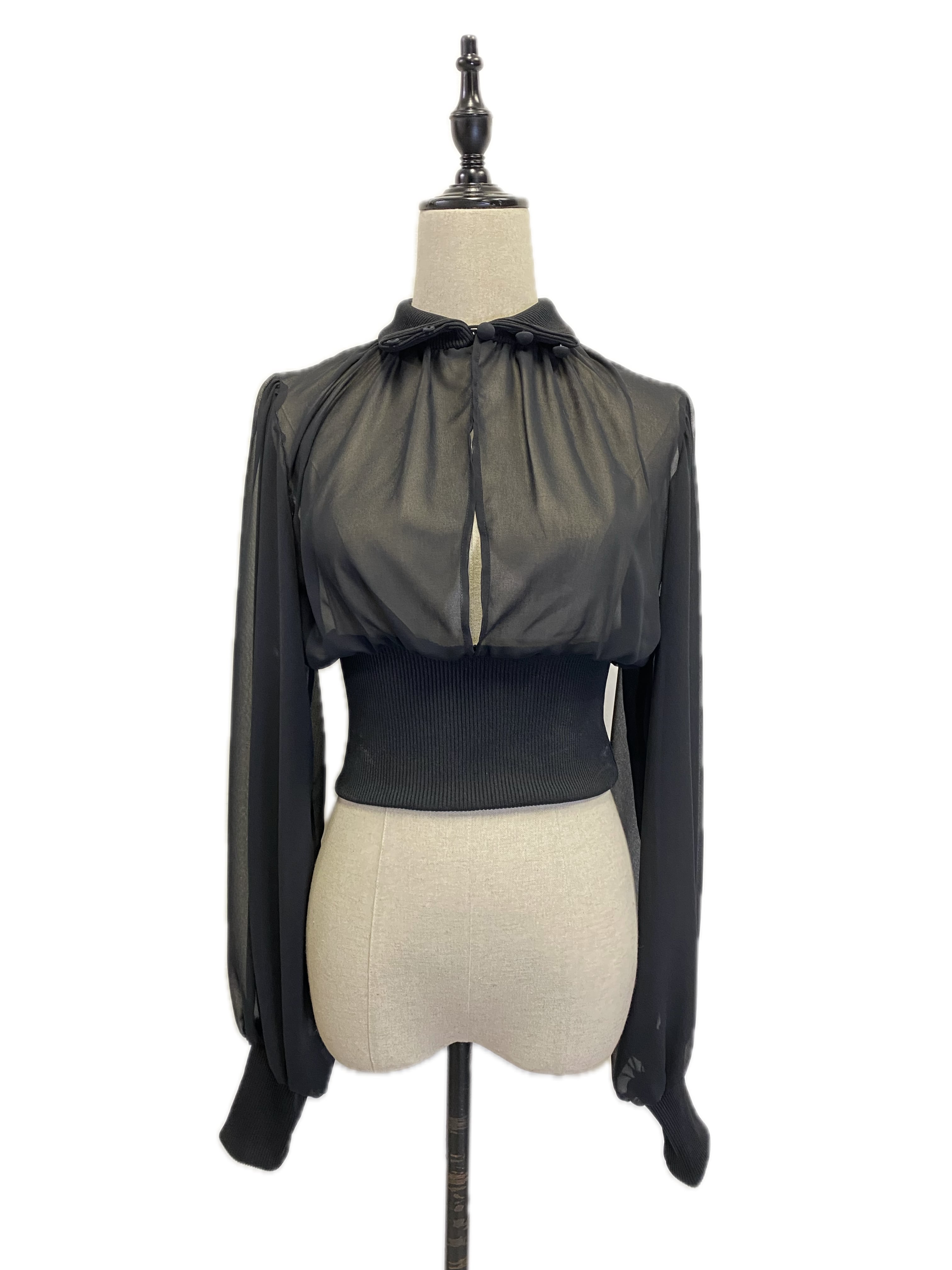 たっぷりとしたパフスリーブと身頃もギャザーのよったデザインです。