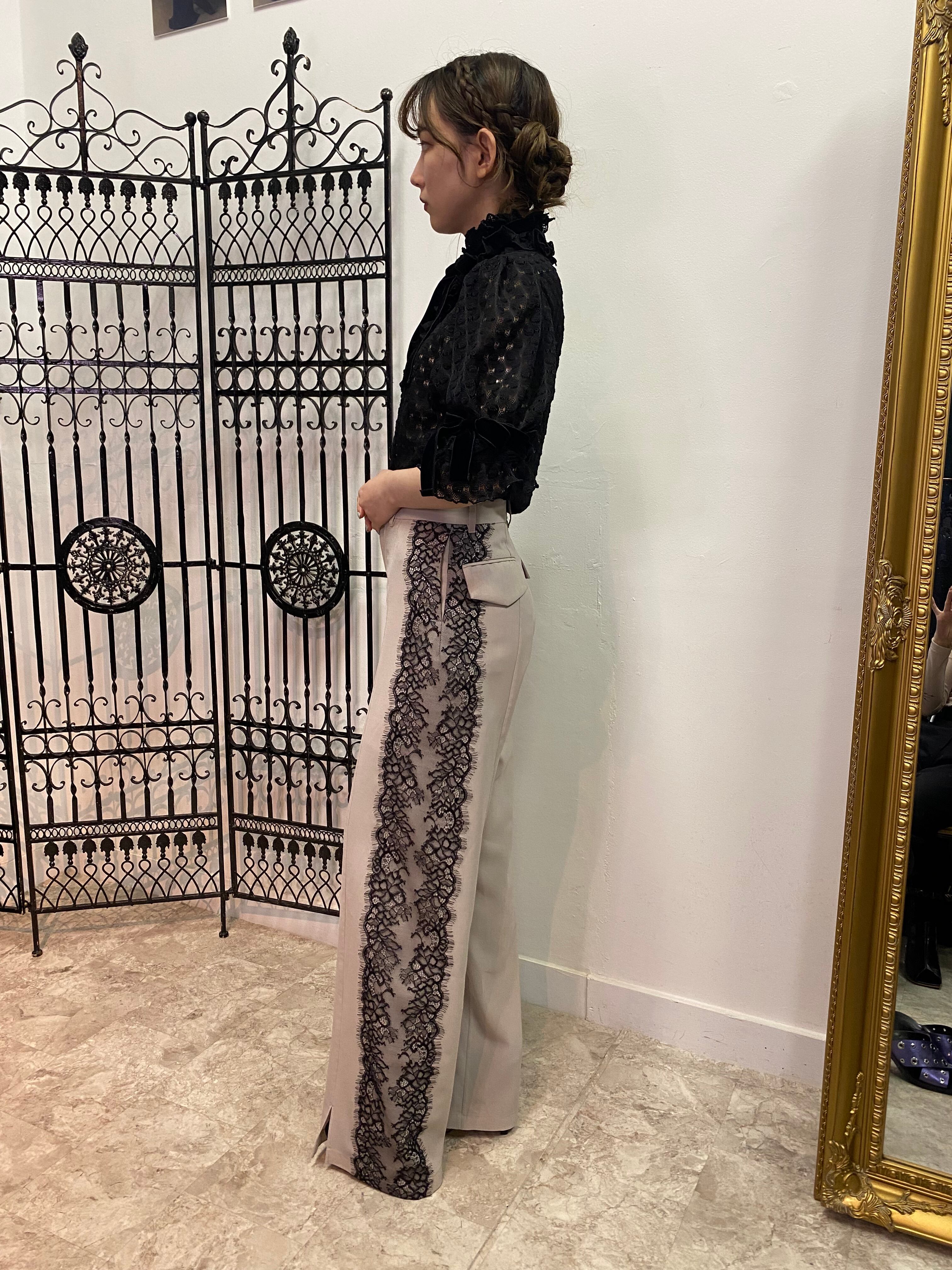 繊細なリバーレースが側面に贅沢に施された、贅沢なパンツ