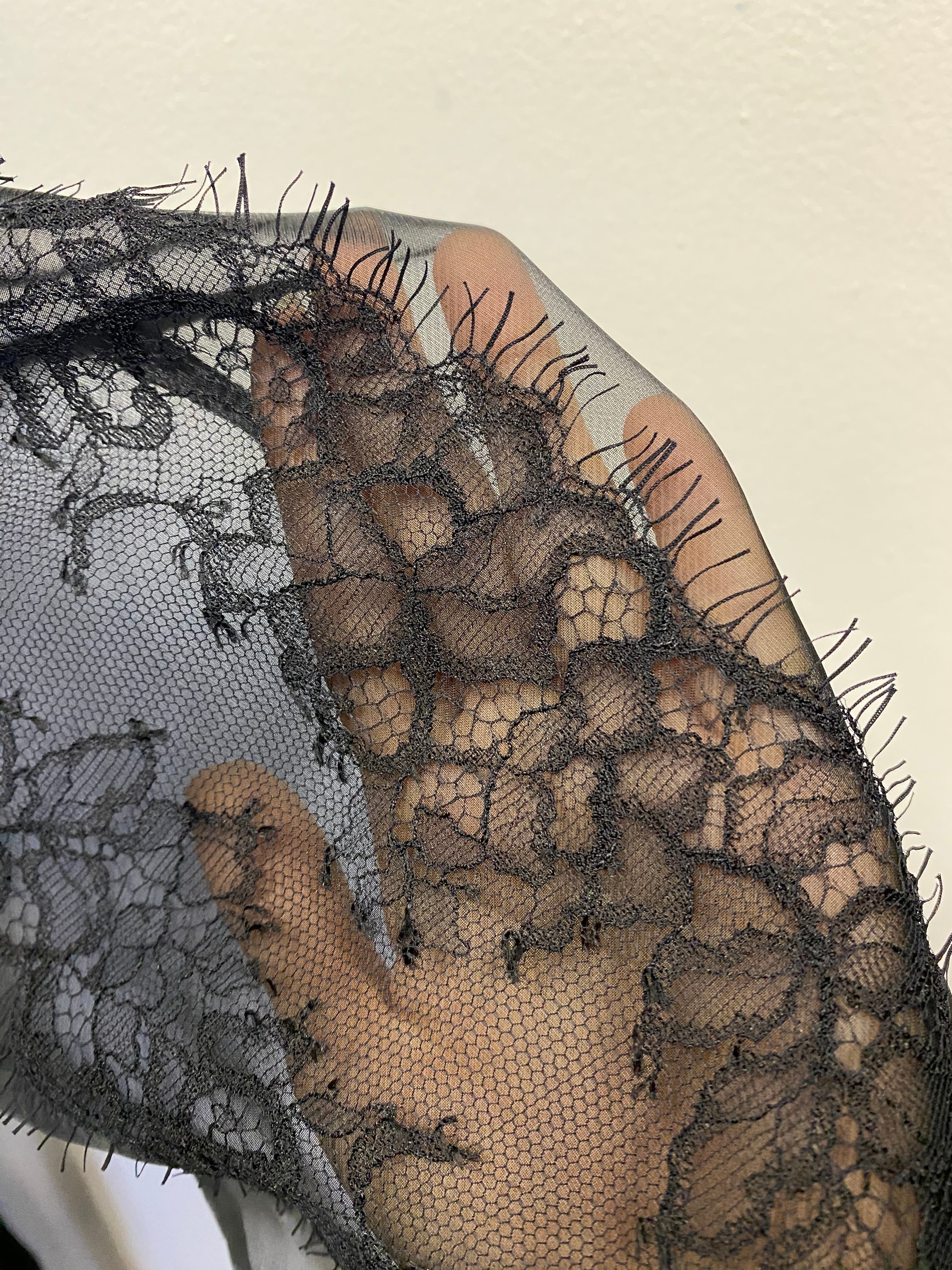 2素材展開で、シースルー生地と柔らかな落ち感のある生地です。