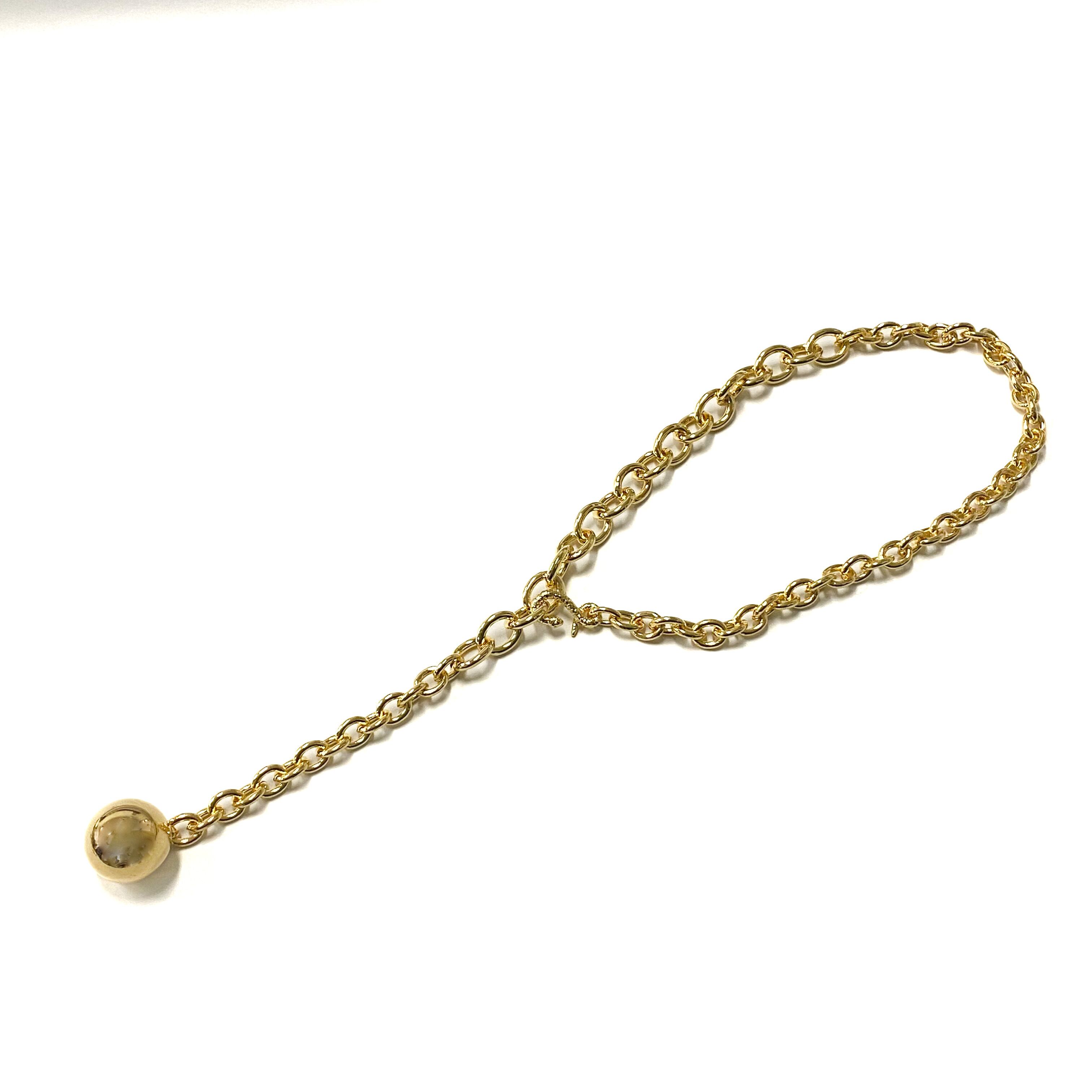 重厚感のある球体はシンプルながらも、目を引くデザインで、チェーンにフックを差し込むタイプとなっております。
