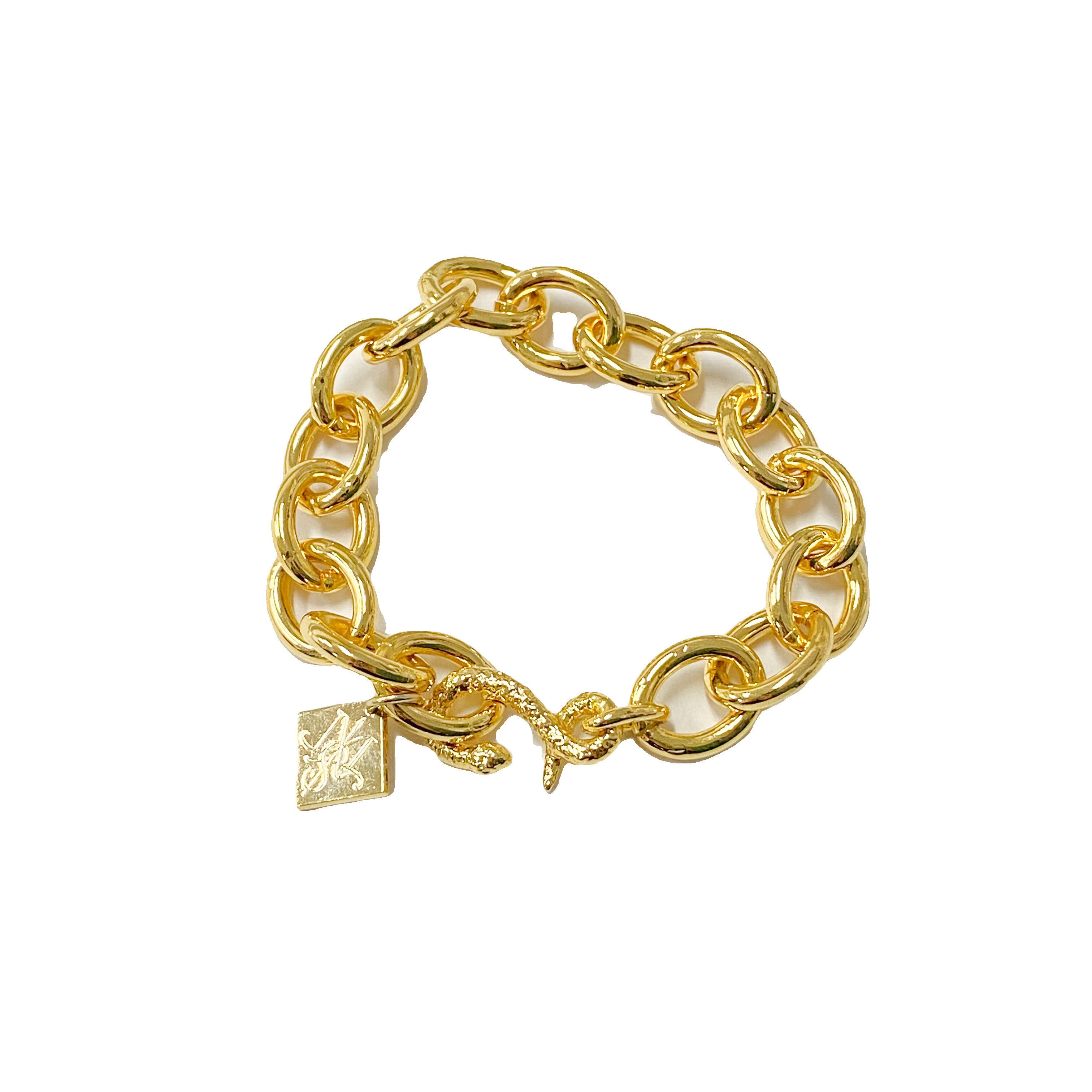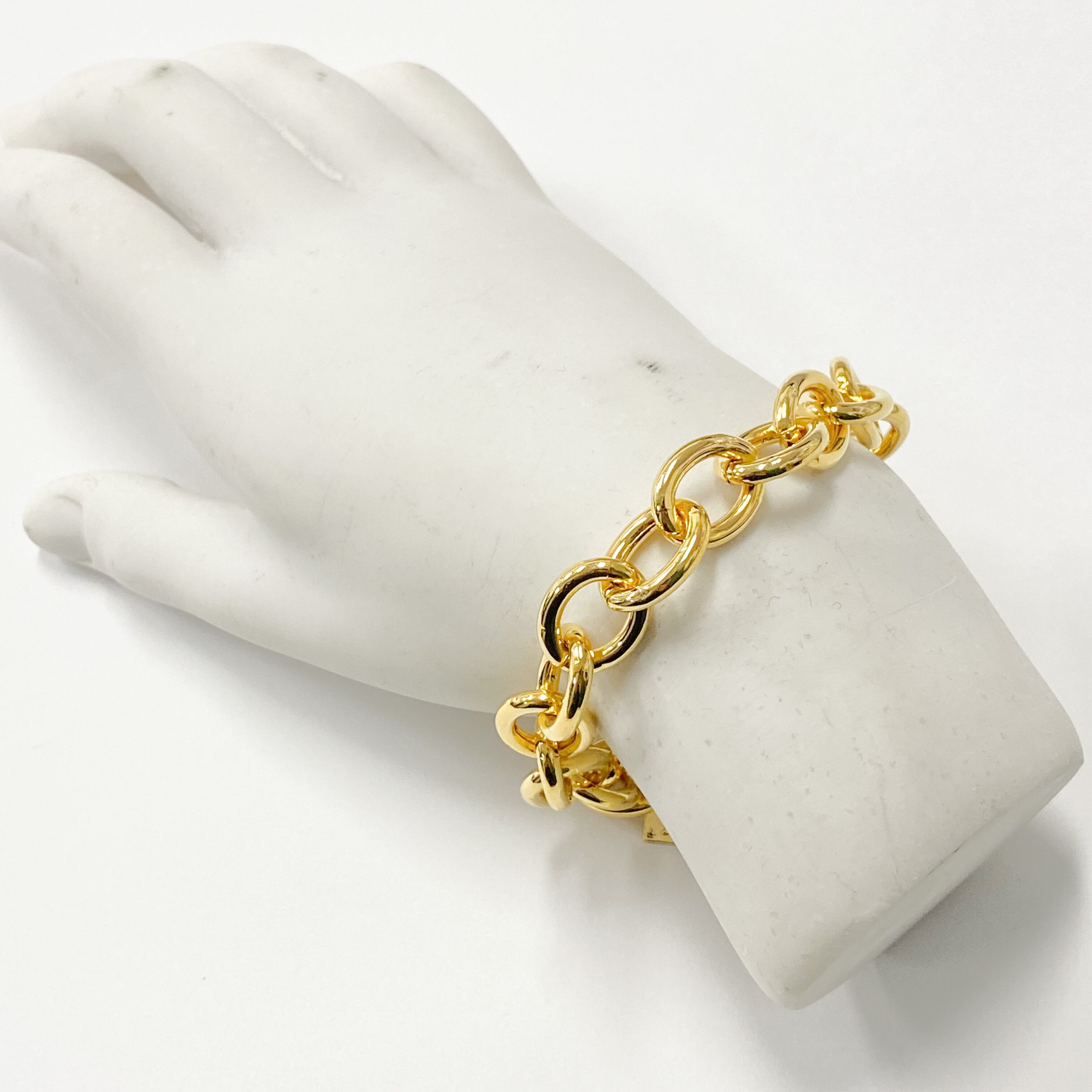 シンプルながらも大きめのチェーンで存在感のあるブレスレットです。